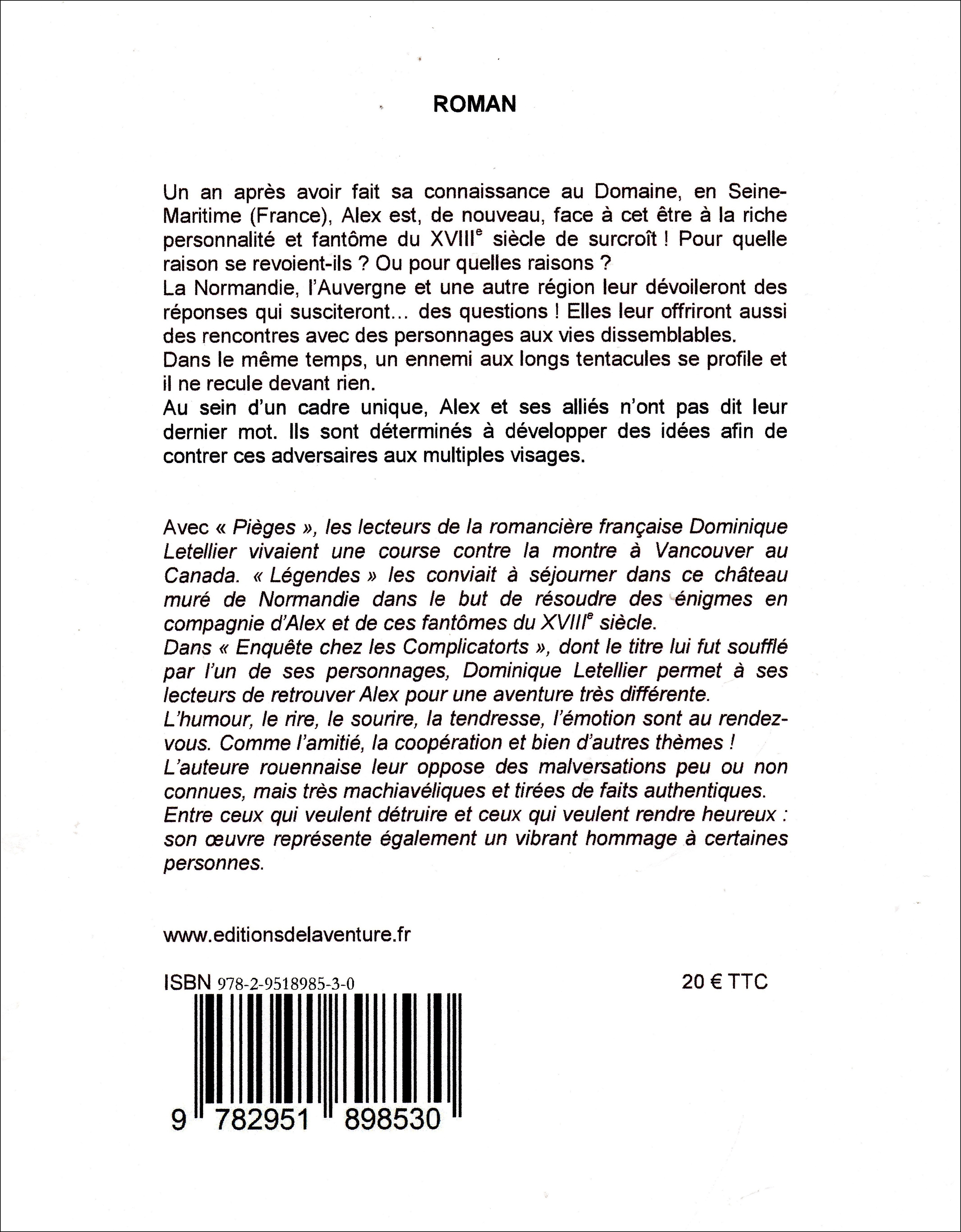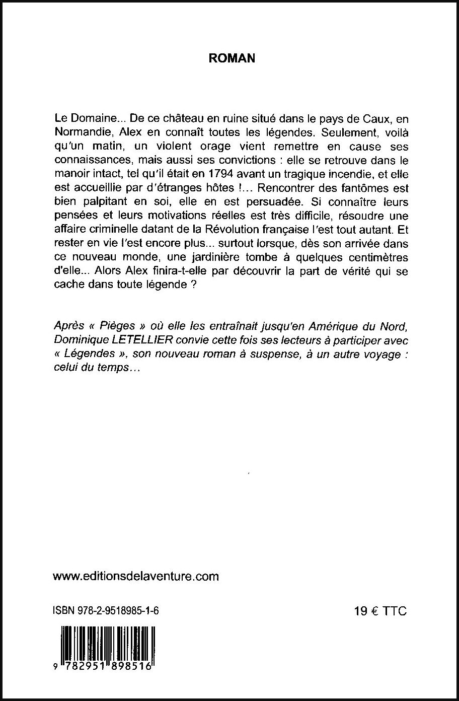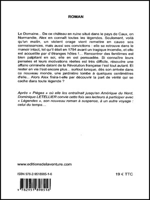 Avec « Pièges », les lecteurs de la romancière française Dominique Letellier vivaient une course contre la montre à Vancouver au Canada. « Légendes » les conviait à séjourner dans ce château muré de Normandie dans le but de résoudre des énigmes en compagnie d’Alex et de ces fantômes du XVIIIe siècle.